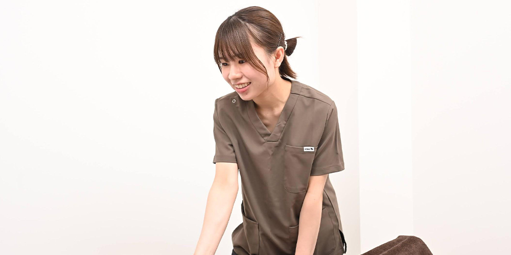 | 就職してから今まで | 就職は、地元である大阪か東京で働くかどちらかにしようと考えていました。一度大阪から出てまた違った環境で働いてみるのも良い経験になると思い、東京で働くことを決めました。 一年後に女性専用の接骨院兼エステサロンを開くというお話を聞いたのでより興味が湧き、まろん鍼灸接骨院に就職しました。 慣れない環境で新生活が始まり不安もたくさんありましたが、職場では先生方や受付の方が優しく指導してくださり頑張ることができました。 |